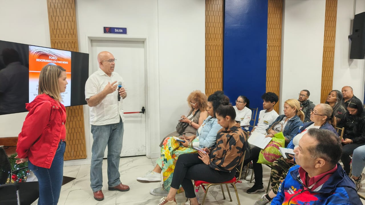 La capacitación estuvo a cargo de la periodista y productora Clara Vega, quien, a través de material audiovisual y explicaciones detalladas, expuso las formas en las que la desinformación busca desestabilizar a la "Revolución Bolivariana", liderada por el presidente Nicolás Maduro.